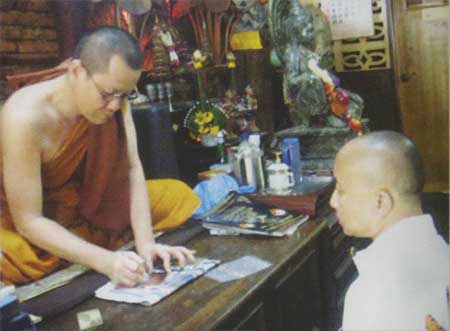 หลวงพ่อสุวรรณ ลงจารอักขระแผ่นชนวน