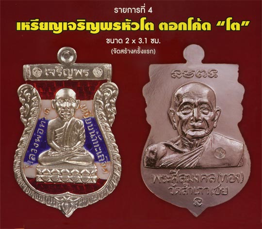 4. เหรียญเจริญพรหลวงพ่อทอง ยันต์กำเนิด