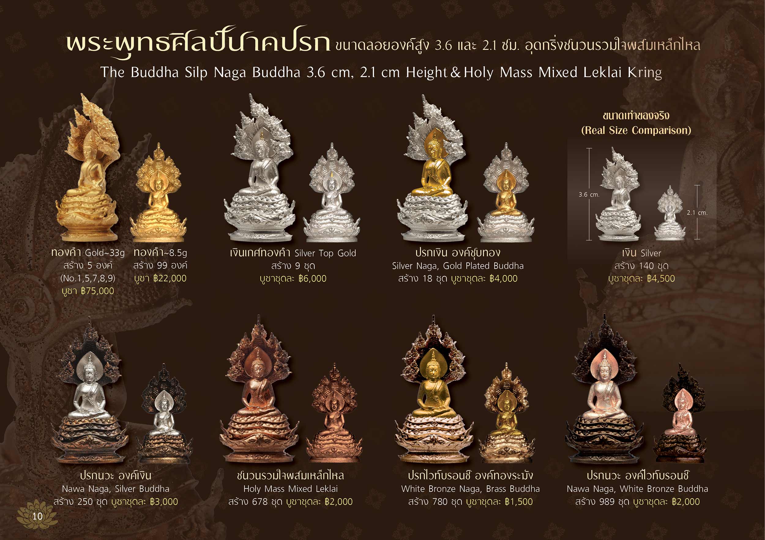 2. ชุดพระพุทธศิลป์นาคปรกลอยองค์สูง 3.6 ซม. + 2.1 ซม. (ปรกนวะ องค์พระไวท์บรอนซ์) 1 ชุดๆ ละ 1,600 บาท