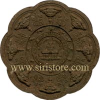 ด้วย นักษัตรทั้งสิบสอง สัญญลักษณ์แห่งเมืองนครศรีธรรมราช รอบนอกประทับไว้ด้วยองค์ท้าวจตุคามและองค์ท้าวรามเทพ